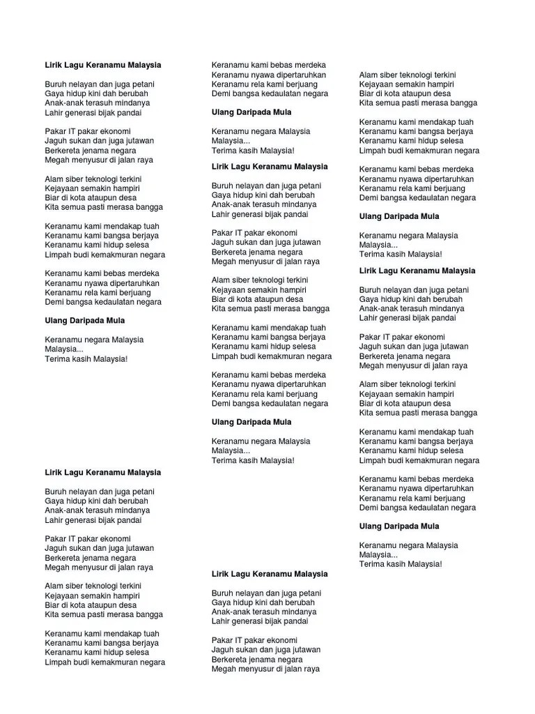 Lirik Lagu Keranamu Malaysia : Oxntmcvmrrjtvm. Gaya hidup kini dah berubah. Semua rakyat malaysia hafal lagu keranamu malaysia kan? Gaya hidup kini dah berubah. Gaya hidup kini dah berubah. chorus buruh nelayan dan juga petani. Buruh nelayan dan juga petani. 12 kali siso tukar lirik lagu . Buruh, nelayan dan juga petani.
