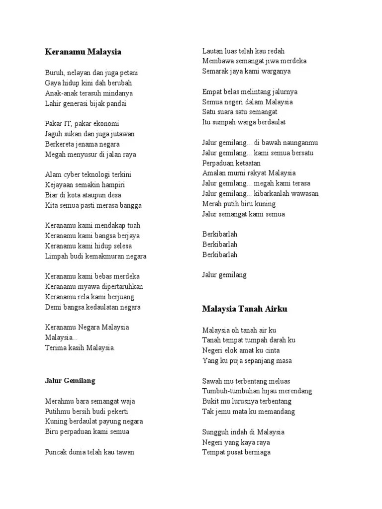 Semua rakyat malaysia hafal lagu keranamu malaysia kan?